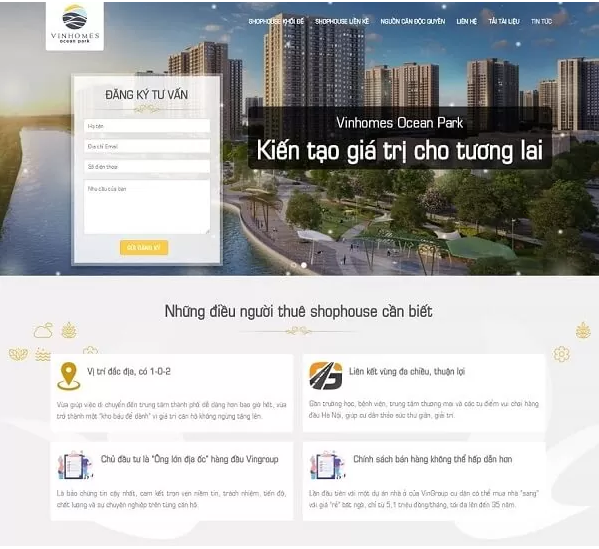II. Nội dung chính cần có trên Landing Page Bất Động Sản